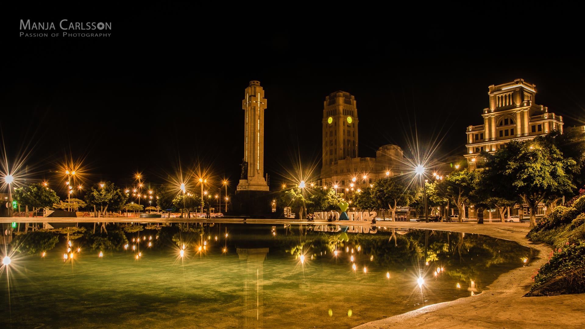 Plaza de Espana im Lichterglanz – Panorama – Blick auf die Stadt Santa Cruz (f/16, ISO 100, 13 Sek, 18mm) – Kamera: NIKON D750, Objektiv: AF-S NIKKOR 14-24mm 1:2.8G ED