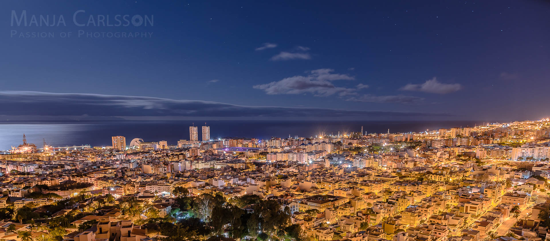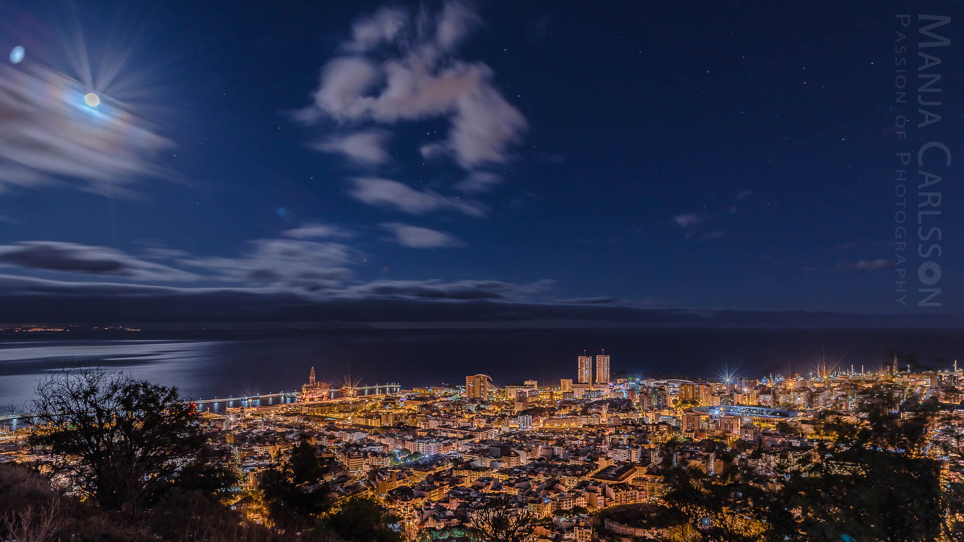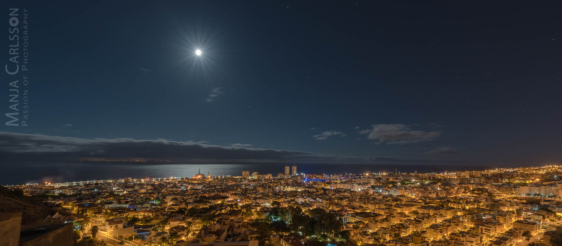 Blick auf Santa Cruz – La Laguna im Mondscheinlicht zur astronomischen Stunde (f/12,8 ISO 100, 13 Sek, 15mm) – Kamera: NIKON D750, Objektiv: AF-S NIKKOR 14-24mm 1:2.8G ED