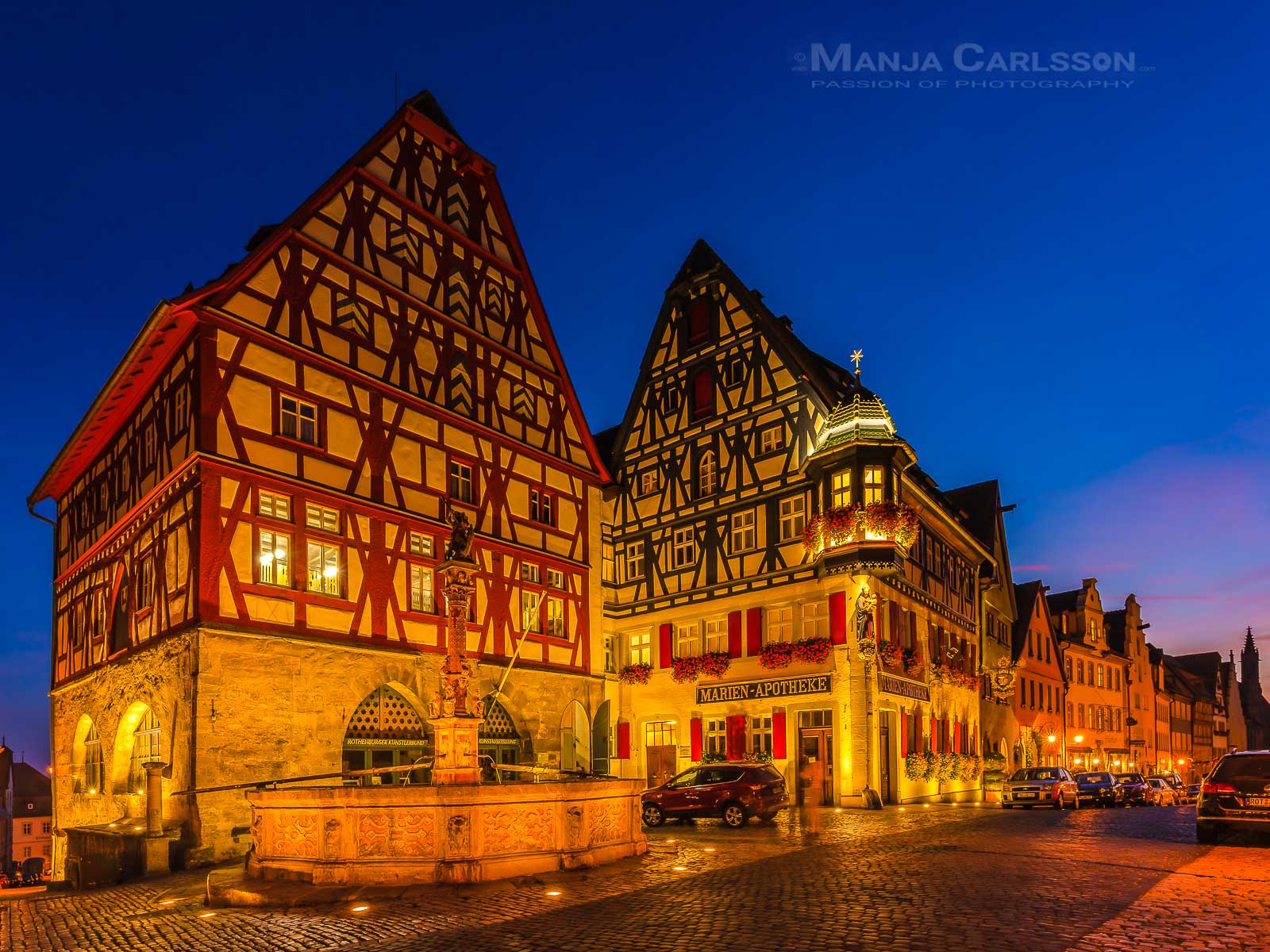 Rothenburg ob der Tauber – St. Georgs Brunnen Marktplatz – zur blauen Stunde – f/14 | ISO 100 | 4 Sek | 20mm – Kamera: NIKON D750 + Objektiv: Sigma Art 20mm 1:1.4 DG HSM © www.ManjaCarlsson.com – All rights reserved.