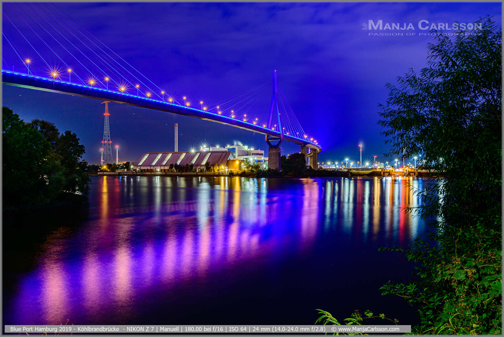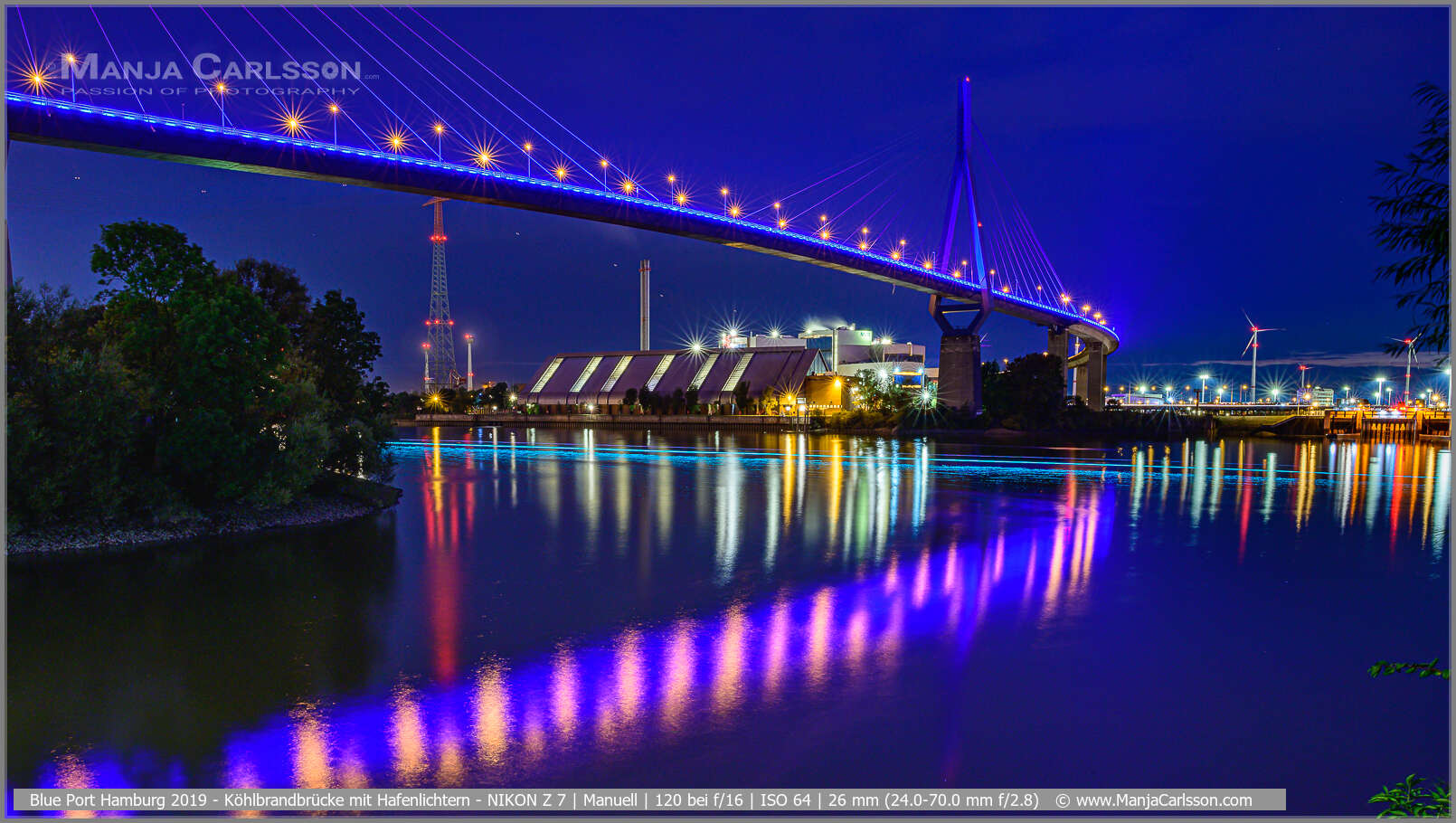 Blue Port 2017 – Blick auf die Köhlbrandbrücke – f/22 | ISO 125 | 30 Sek | 24 mm – Kamera: NIKON D750 + Objektiv: AF-S NIKKOR 24-120mm 1:4G ED VR