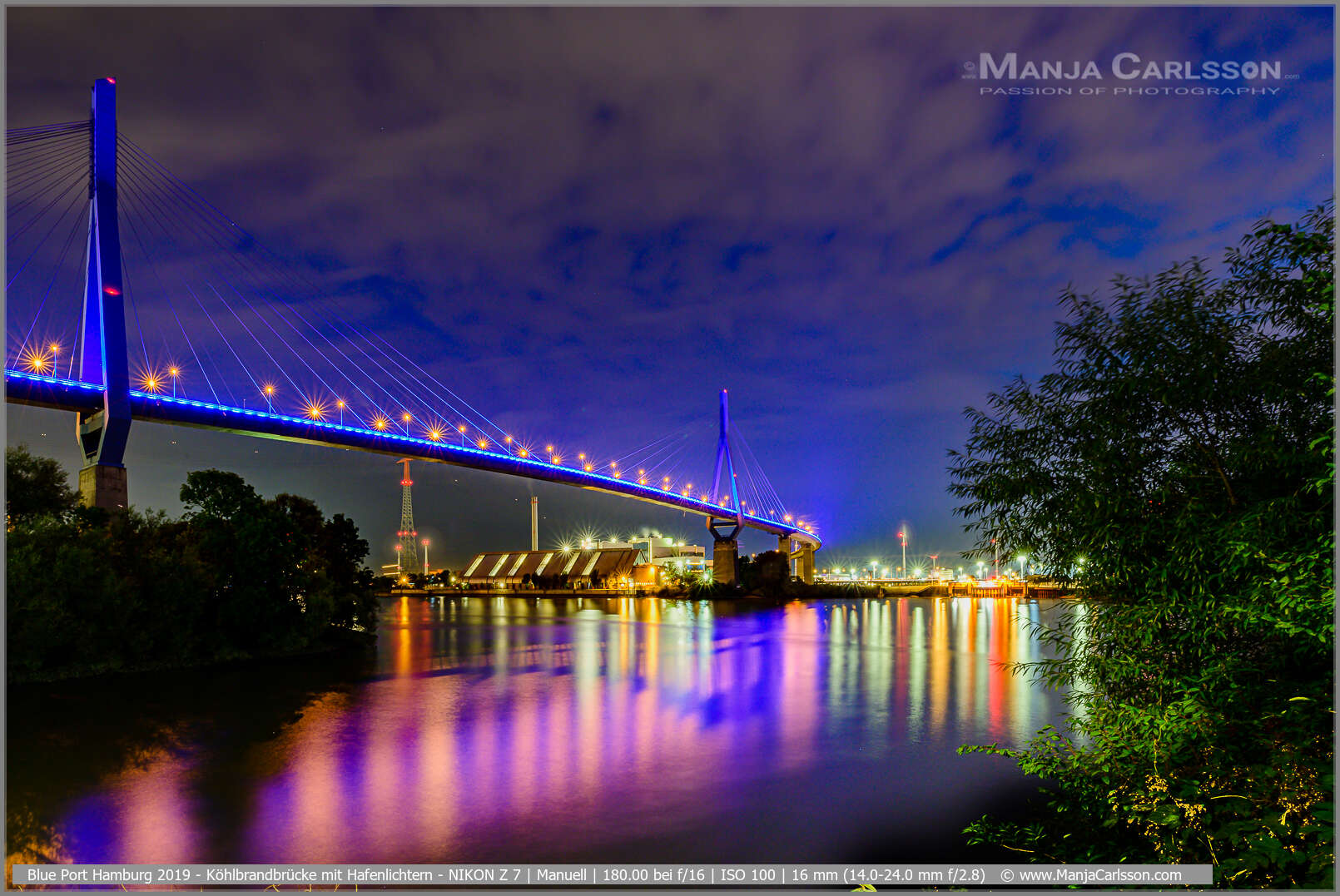 Blue Port 2017 – Köhlbrandbrücke Hamburger Hafen Süderelbe – f/8 | ISO 100 | 30 Sek | 70mm – Kamera: NIKON D750 + Objektiv: AF-S NIKKOR 70–200 mm 1:2,8E FL ED VR
