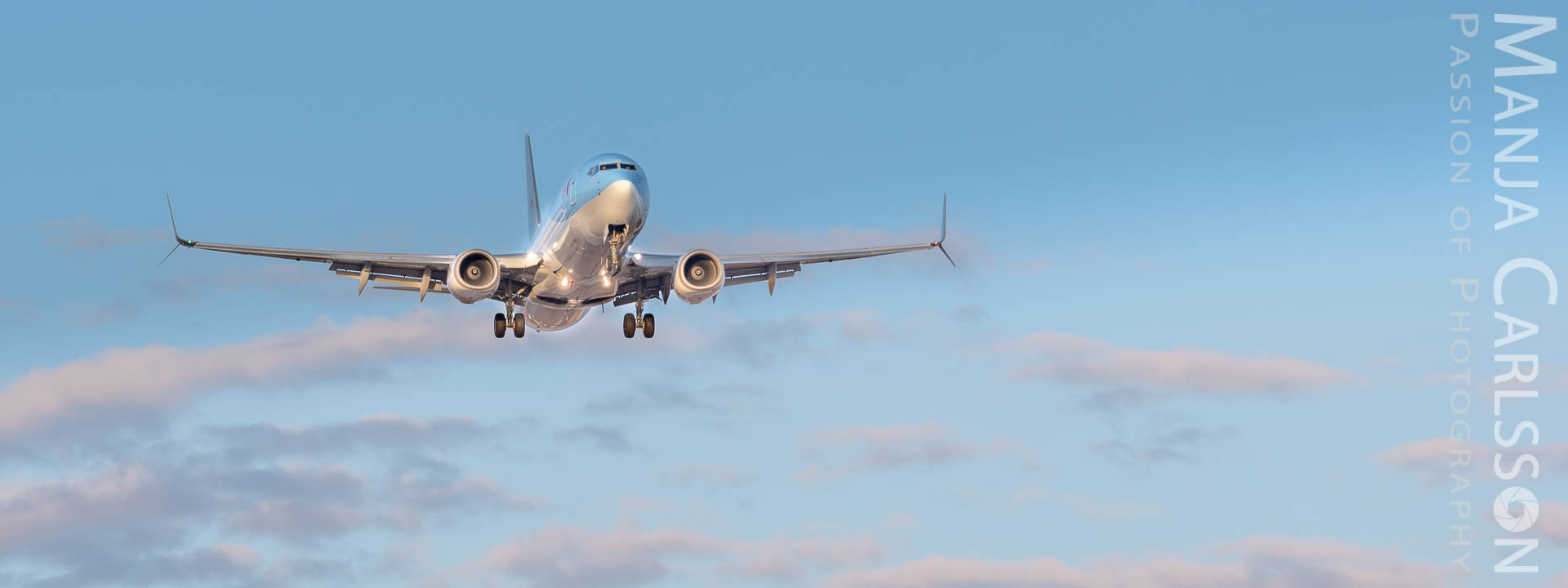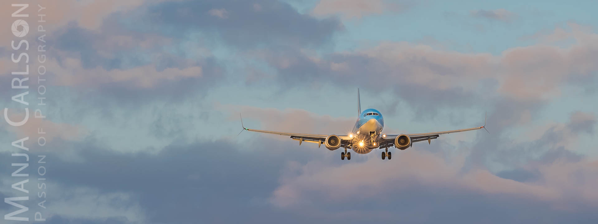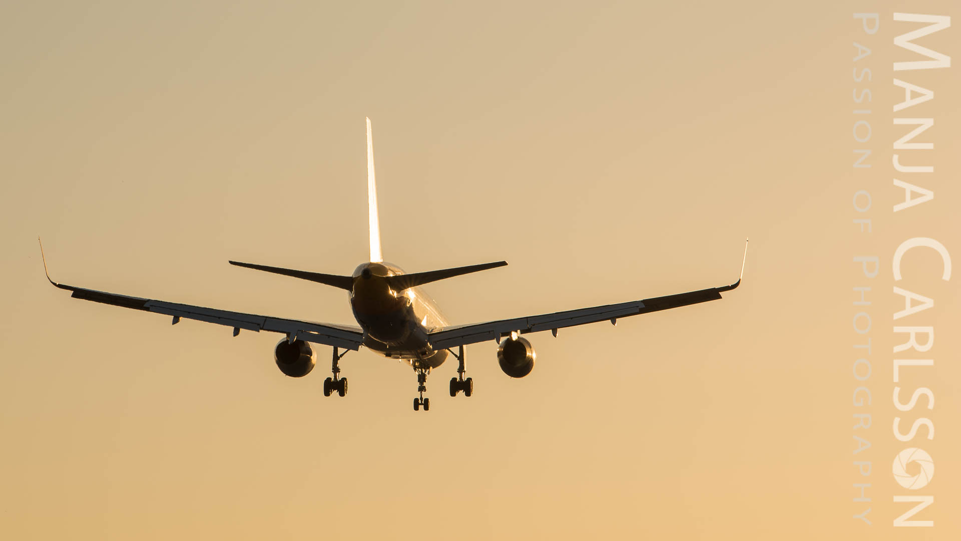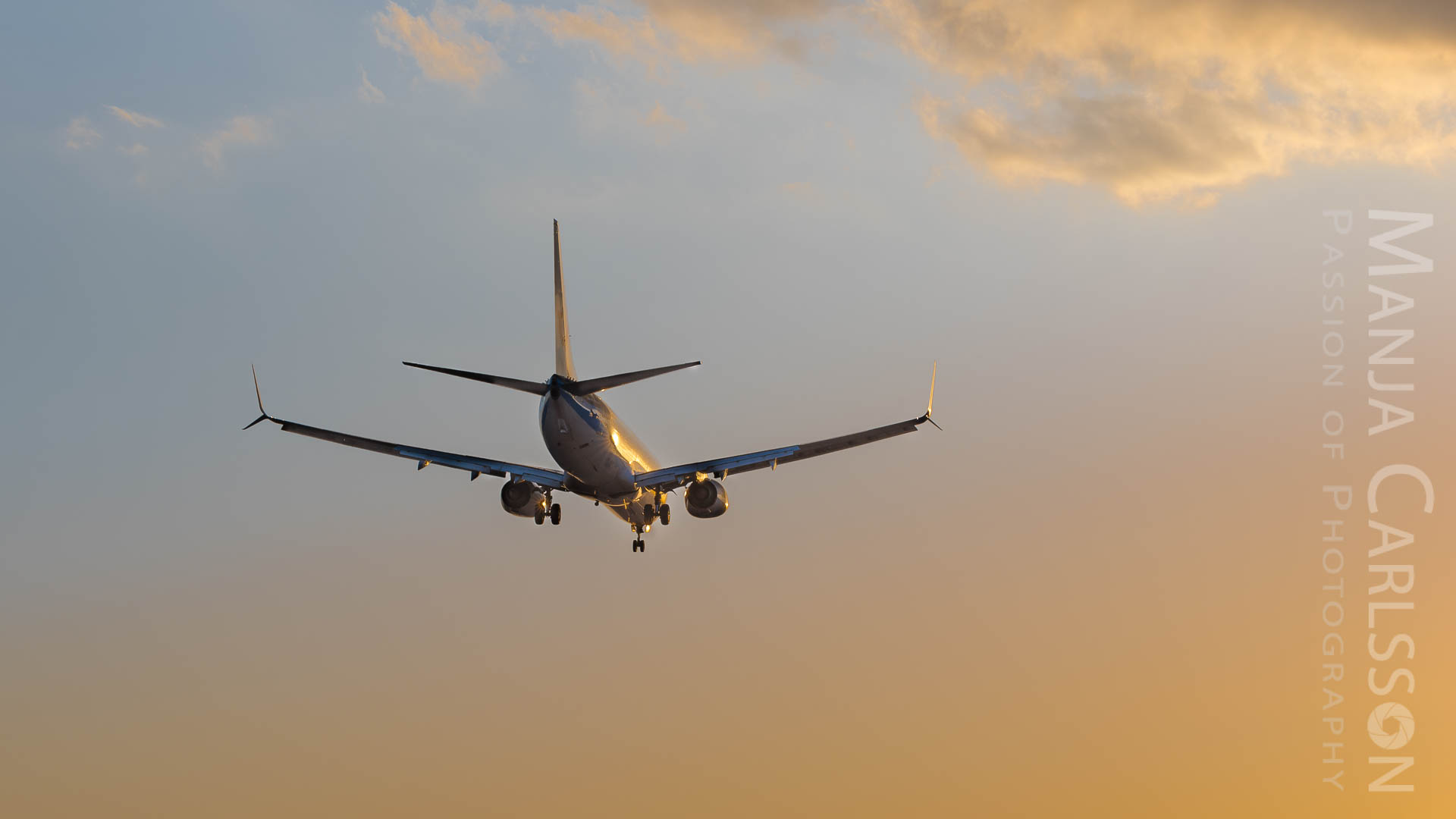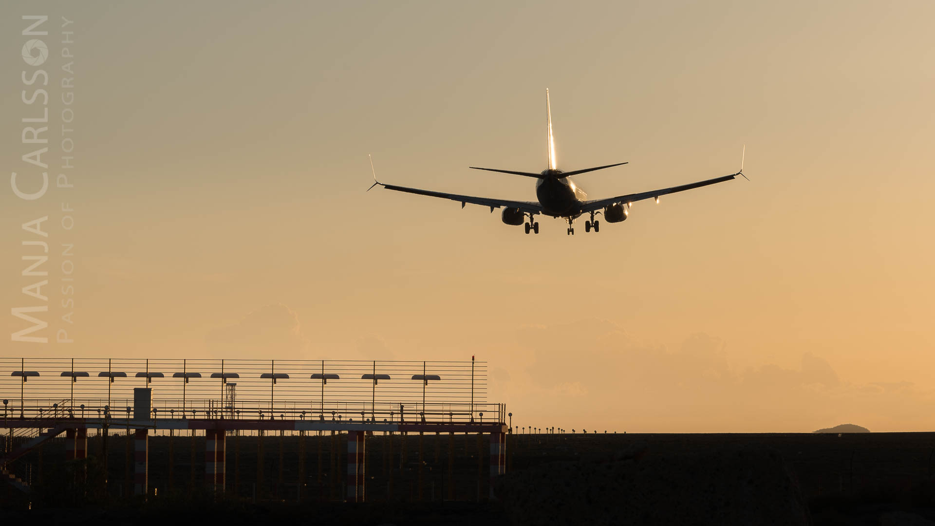 Schon ziemlich nervös stellte ich die Nikon D750 Kamera ein, denn das landende Flugzeug kam immer näher… Ich fokussierte, drückte den Auslöser und fluchte anschließend. Warum? Ich hatte „mal wieder“ vergessen, die Spiegelvorauslösung zurückzusetzen. Grrr. Dank der Funktionstaste (Fn) war das zwar fix korrigiert, aber den Flieger war dadurch schon über mich hinweg geflogen. Mit anderen Worten, ich haben ihn somit nur noch von hinten erwischen können. Allerdings war das gar nicht schlimm. Denn die Farben des Sonnenuntergangs waren traumhaft und ließen das Flugzeug als goldene Silhouette am Himmel glänzen.