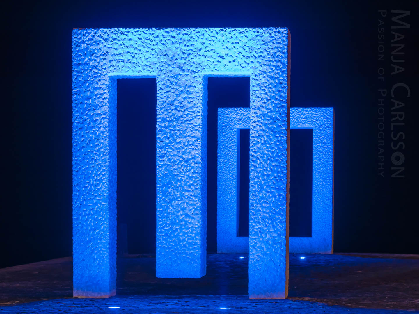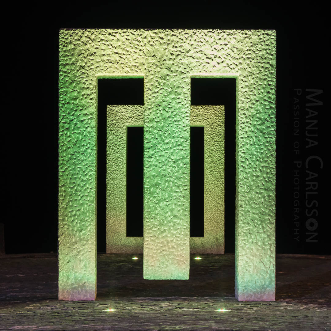 Aber wechselnde Farben in den dunklen Abendstunden machen das Kunstwerk fotografisch noch viel interessanter. Hier musste ich die Belichtungszeit recht kurz halten, um die wechselnden Farben einzeln festhalten zu können . Teilweise waren meine gewählten 3 Sekunden schon fast zu viel.