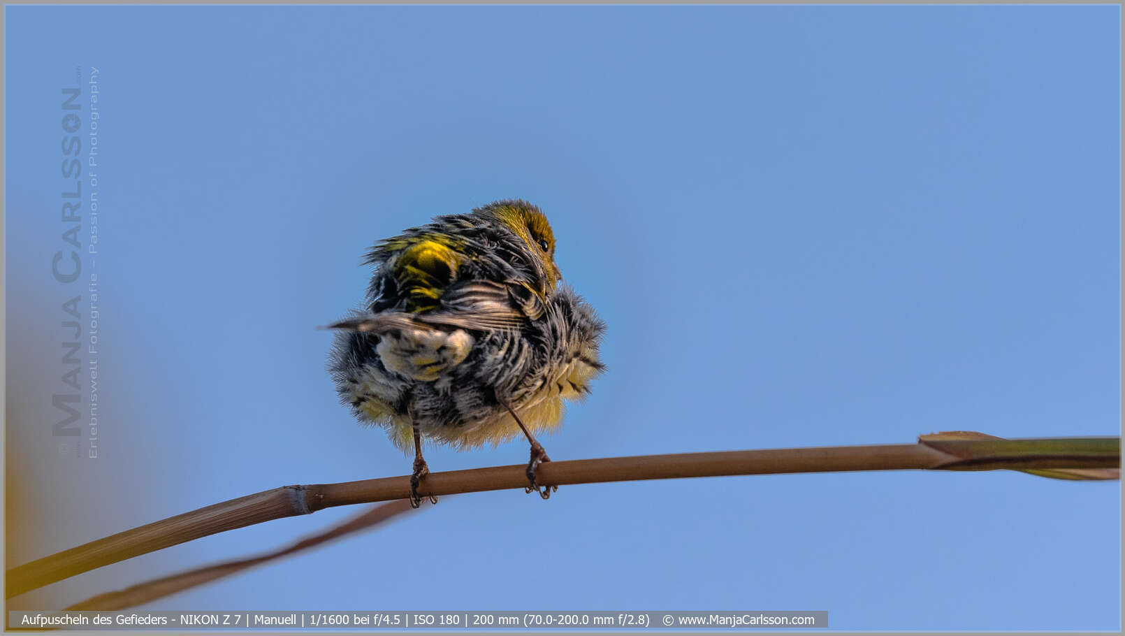 Das Sonnenlicht verschwand immer mehr und die Abenddämmerung kam immer mehr auf. Dieser Moment wird bald vorbei sein, da bemerkte ich, dass der kleine Pieps gleich sein Gefieder aufschütteln wird.