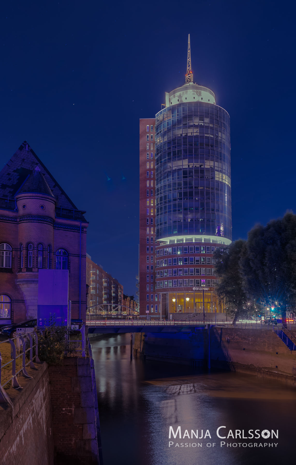 Die Bürogebäude am Kehrwiederfleet sind modern und der Speicherstadt toll angepasst. Die vielen, angeleuchteten Brücken bringen das Fleet in perfekte Stimmung. Leider stand auch hier ein Baugerüst davor, so dass wir ziemlich arg in der Bildgestaltung eingeschränkt waren. Aber Aufgeben gilt nicht. So findet man vielleicht auch neue, ungeahnte Perspektiven.