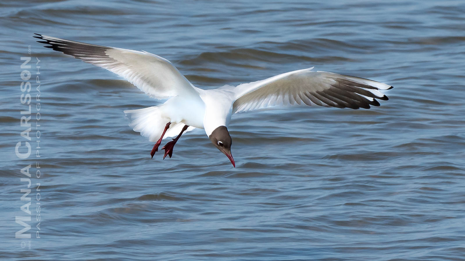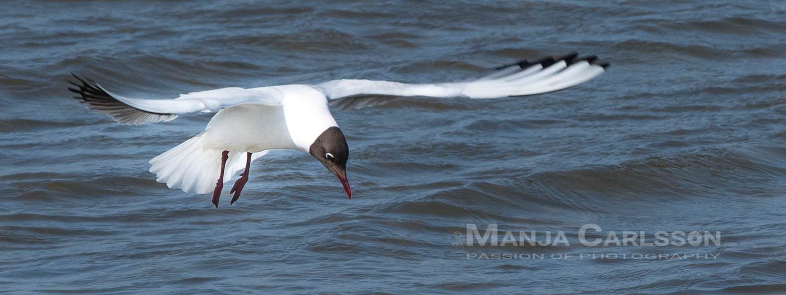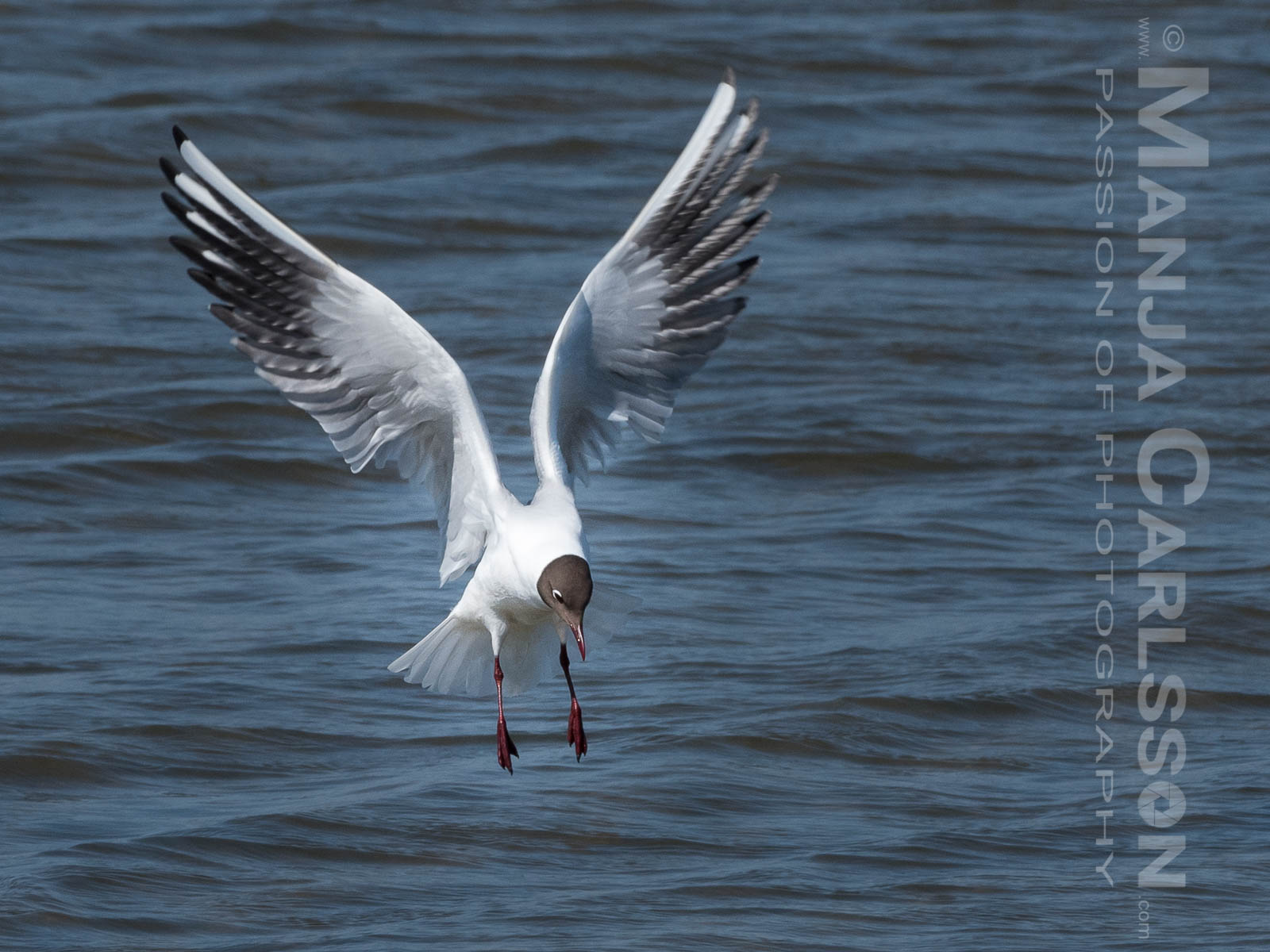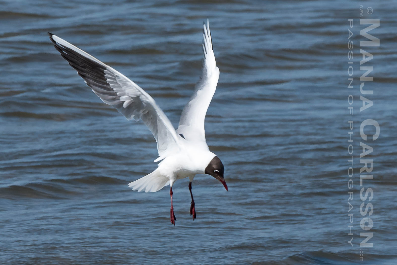 Lachmöwe mit ausgebreiteten Flügeln im Sturzflug – f/11 | ISO 450 | 1/1250 Sek | -⅔ LW | 500mm – Kamera: NIKON D750 + Objektiv: AF-S NIKKOR 200–500 mm 1:5,6E ED VR © www.ManjaCarlsson.com – All rights reserved.