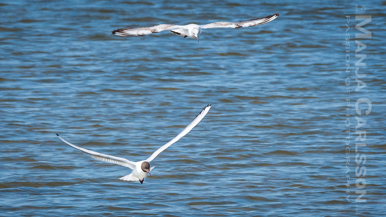 zwei Lachmöwen auf Beutezug – f/11 | ISO 640 | 1/1250 Sek | -⅔ LW | 500mm – Kamera: NIKON D750 + Objektiv: AF-S NIKKOR 200–500 mm 1:5,6E ED VR © www.ManjaCarlsson.com – All rights reserved.