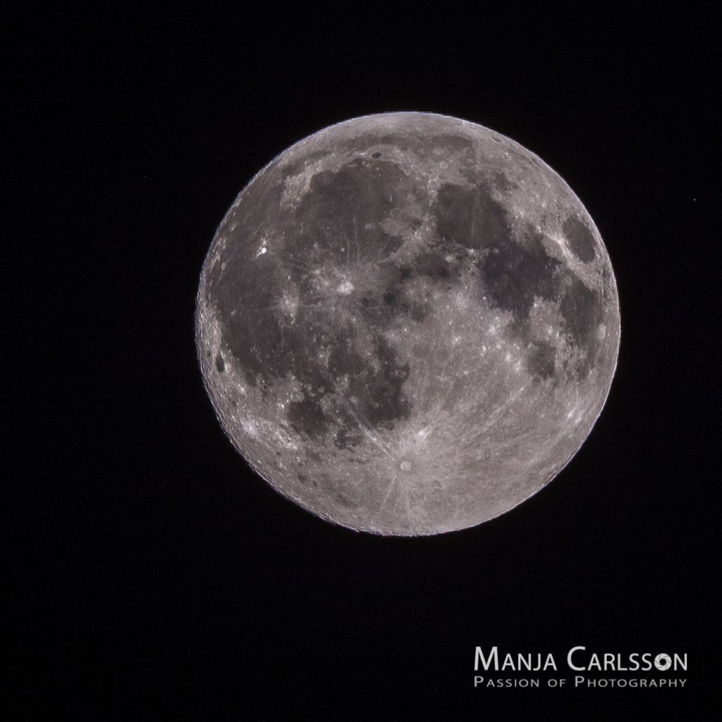 Ich habe ganz neugierig mein neues Tele-Objektiv: AF-S NIKKOR 200-500mm ausprobiert. Ich hatte vorher das Nikon Tele-Zoom-Objektiv AF-S VR ZOOM-NIKKOR 70–300 MM 1:4,5–5,6G IF-ED. Mit dem Objektiv war die Mondfotografie auch schon gut möglich, allerdings nicht so schön und nicht so detailliert. Bei der Bild-Bearbeitung des Fotos waren wir dann aber echt erstaunt, wie detailliert die Aufnahme ist. Als ich das Foto gleich im Freundeskreis verschickte, schrieb ich nur: Bitte reinzoomen! Das war wirklich beeindruckend. 😛