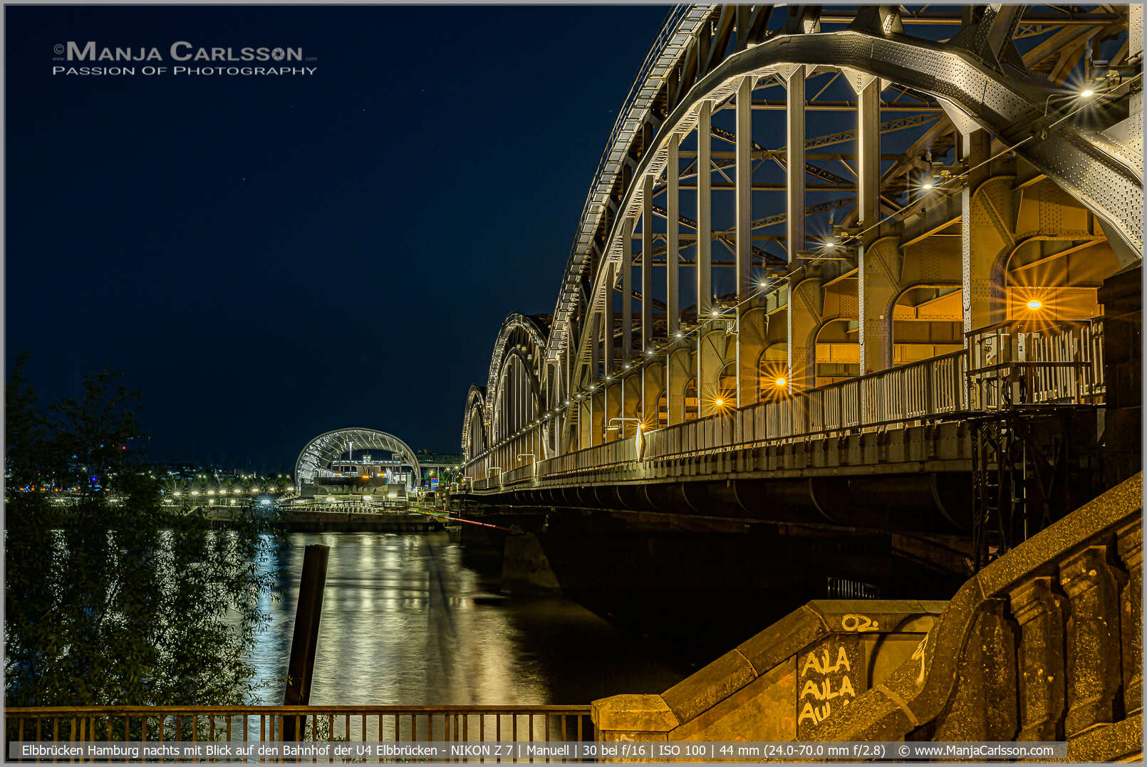 Dort sah ich die Elbbrücken mit der neuen U-Bahnstation Elbbrücken von der neuen Linie U4. Wir waren zwar schon recht müde, aber dieses Motiv wollten wir dann doch noch gerne als Abschluss einfangen.