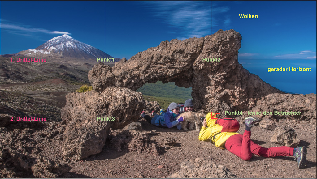 Der Betrachter sollte ohne Umschweife auf das im Bild gelenkt werden, auf das Du in diesem Foto aufmerksam machen wolltest. Du hast nun schon die DrittelRegelung für den Horizont und eines der vier Punkte für dein Objekt gewählt, aber… Aber? Ja, was denn noch? Ganz simpel. Beachte, ob es Dinge im Foto gibt, die den Betrachter ablenken könnten. So genannter Fotomüll. Dann ändere den Winkel, die Höhe oder zoome näher ran. Auf jeden Fall, sollten störende Elemente vom Foto fernbleiben. Jetzt bitte aber nicht irgendwelche Äste, Bäume, Steine etc. beiseite räumen.
