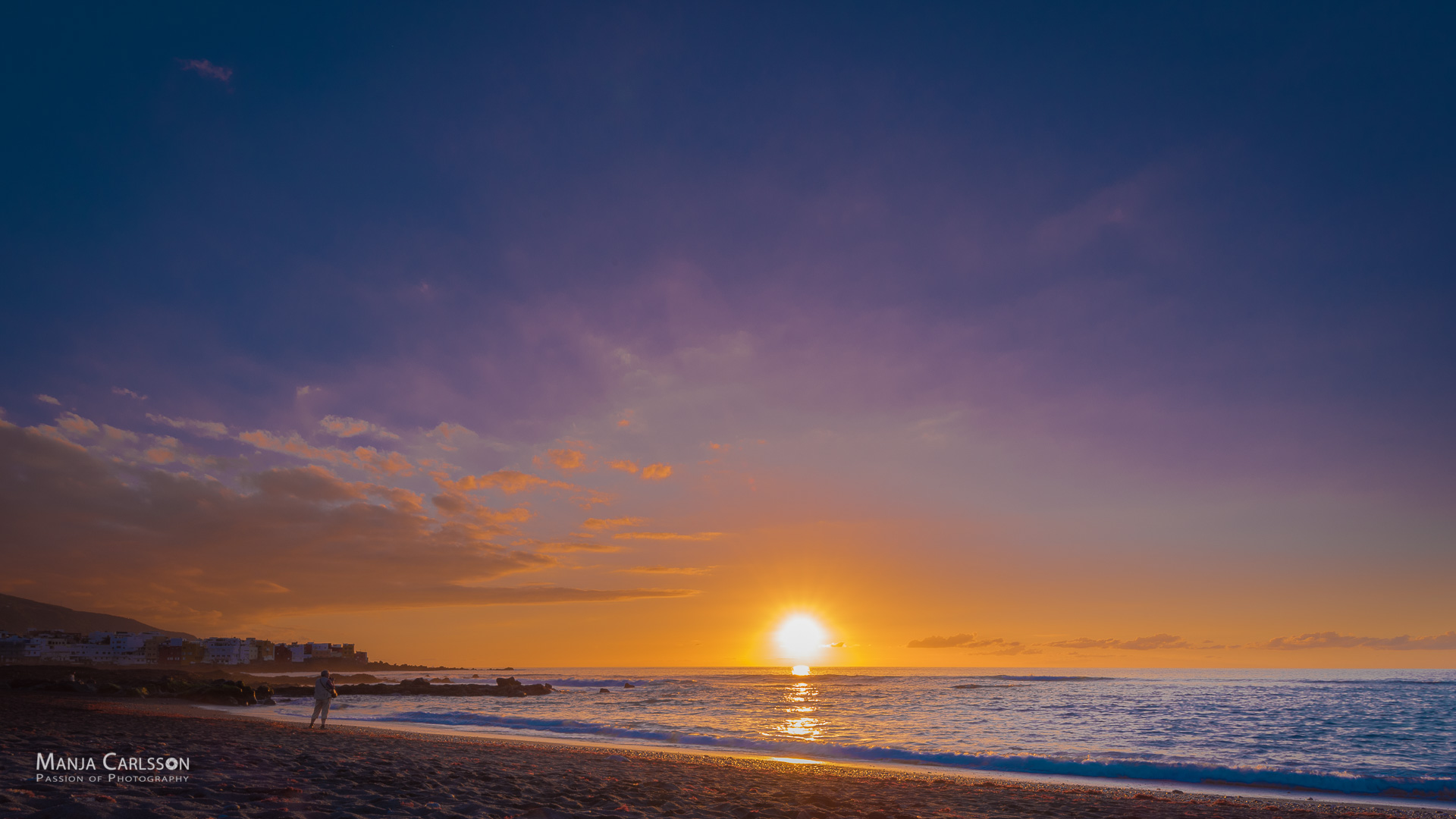 Ein Mann stand weiter links am Meer und fotografierte dort den Sonnenuntergang. Das war ein schönes Motivteil in meiner Bildkomposition, welches mir richtig gut gefiel. Andere kamen für kurze Fotos ans Meer und gingen gleich wieder. Dank der Langzeitbelichtung verschwinden oder verwischen die Leute dann auch fast aus dem Foto.