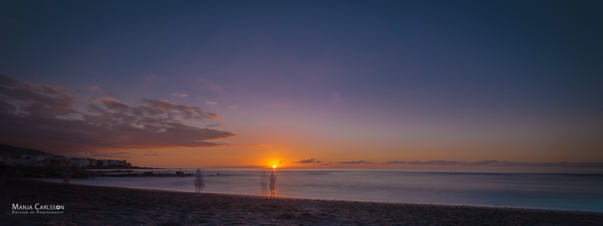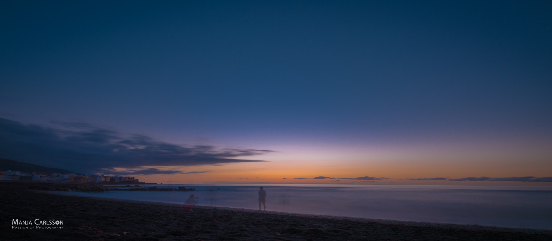 Punta Brava – nach Sonnenuntergang mit Leuten am Strand, Puerto de la Cruz (Tenerife) (f/16, ISO 100, 133 Sek, 14mm) – Kamera: NIKON D750, Objektiv: AF-S NIKKOR 14-24mm 1:2.8G ED – Filter: Lensinghouse ND 3.0, StativMal anders – selbst nach Sonnenuntergang…