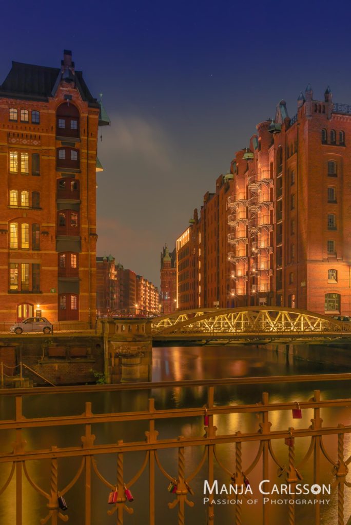 Während meine Nikon D750* ihre Aufnahmen machte, schaute ich weiter verträumt in die Fleete (Kanäle) und auf die Speicher. Erst da fielen mir die Liebesschlösser auf. Hier, an diesem doch recht verstecktem Ort jetzt auch schon. Ja, auch Hamburg hat mittlerweile seine Brücken voll mit Liebesschlössern.