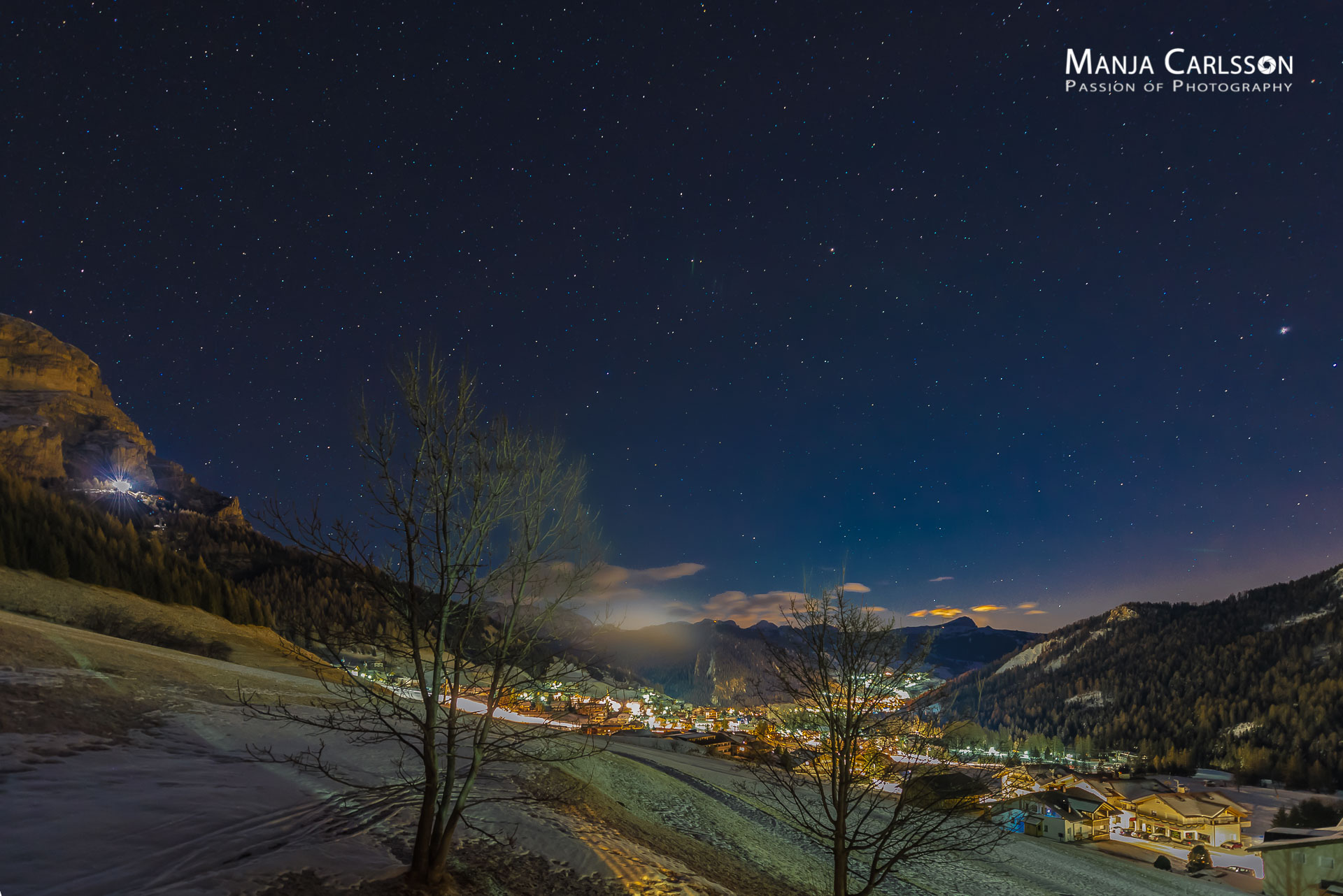 Wir waren 12 Tage in den Dolomiten zum Skifahren. Damit ist man ja auch schon mal in den Bergen und oft sind da auch die Sterne zu sehen. Zwar keine Milchstraße, aber das ist am Anfang egal. Die ersten Tage hatte es nur geschneit oder die Wolken waren haufenweise da. Es gab einfach keine Sterne am Himmel zu sehen.